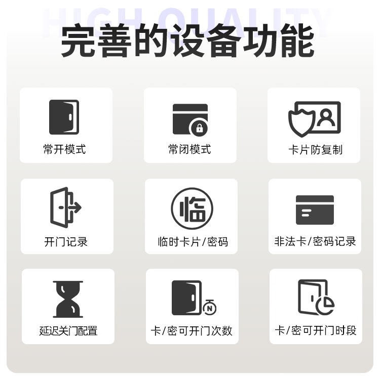 揭阳这款智能门锁提供室内门锁和防盗门锁两种选择,其中室内门锁尺寸为 2806521mm,适配 5050 锁体;防盗门锁尺寸为 3657021mm,适配 6068 锁体,可满足不同场景的安装需求。它采用铝合金一体成型搭配钢化玻璃面板打造,兼具坚固耐用的品质与简洁美观的视觉效果。门锁支持蓝牙无线通讯,解锁方式丰富多样,密码、卡片、蓝牙、钥匙四种方式随心选择,满足不同使用习惯与应急需求。其工作温度范围为 - 20~70℃,能适应多数地区的气候条件,采用碱性电池供电,安装更换便捷,是兼具安全性与实用性的门锁选择。